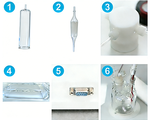 8、计量泵:精选德国特殊玻璃材质制成,保证了仪器的密封性、稳定性,使用时杜绝了漏液这一难题;9、磨砂玻璃管:与其他仪器的玻璃管相比,SYP-1的玻璃管创造性地融入了磨砂管设计,使得与反应瓶接触更为紧密;10、三通阀:结构设计砖利采用电子控制,可以在吸液和注液状态下自由进行转换;采用进口材质保证三通阀的耐磨性和紧密性,解决掉了其它水分仪易出现的漏液现象;11、试剂展架:表面经电化学处理后光亮豪华,耐磨损,耐腐蚀;12、打印机/电脑接口:VGA接口方便使用者与打印机或电脑链接,及时存储数据和导出数据;13、反应瓶:卡尔费休试剂有一定的腐蚀性,反应瓶特有的磨砂口设计使得与磨砂玻璃管衔接更紧密大大减少了试剂的挥发漏液等问题,保护使用者健康安全;在反应瓶中还配有一颗搅拌子,在反应时通过转动使得试剂与样品更有效的接触,反应更得彻底,测试的结果更真实、更准确。